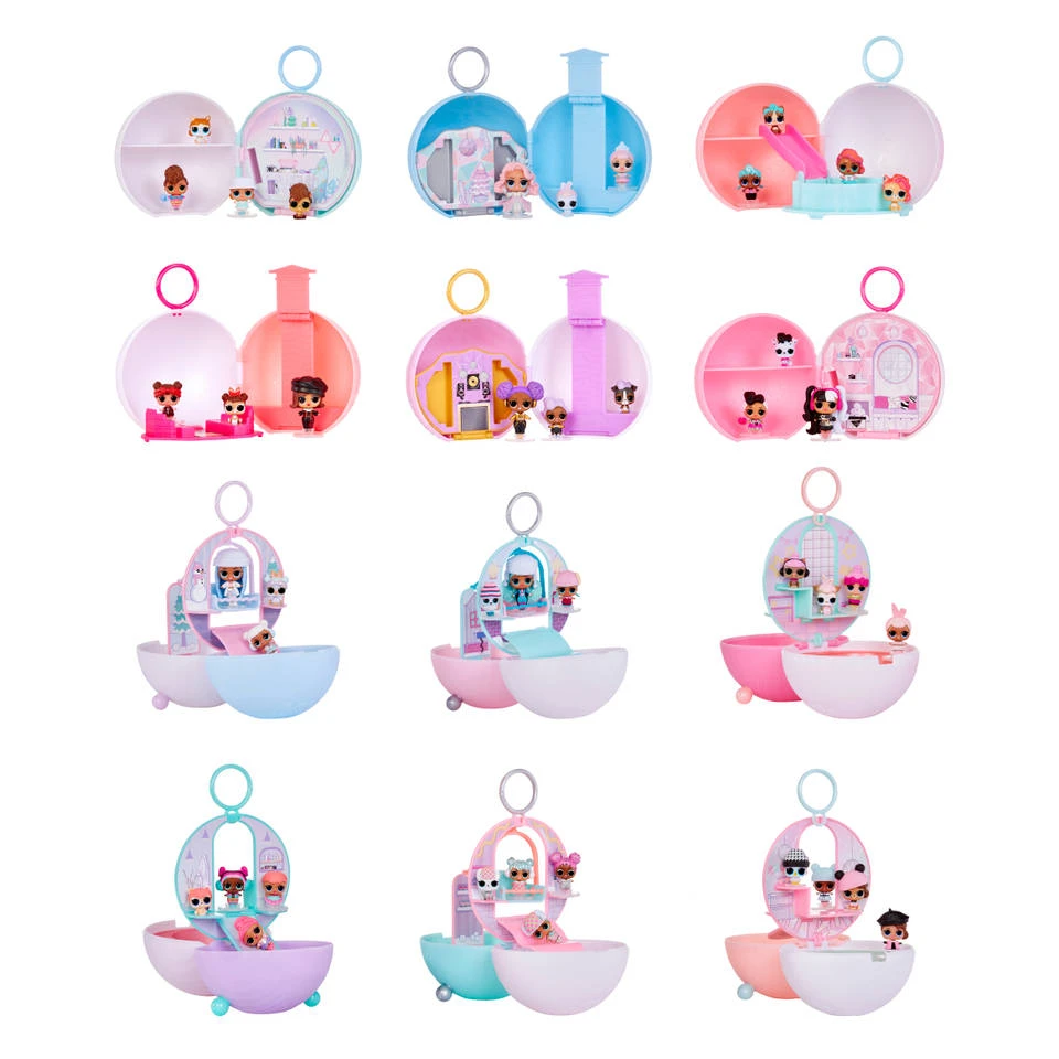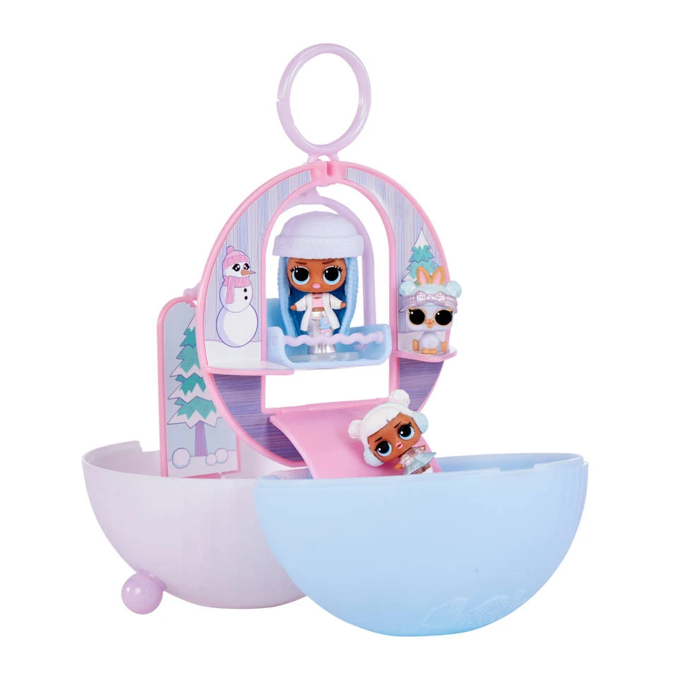 Pak met deze L.O.L. Surprise! O.M.G. minifamilie je favoriete O.M.G. figuren uit. Deze mini set bevat het evenbeeld van de modepop van 25 cm, de verzamelpop van 7,6 cm en het familiehuisdier, inclusief hun opvallende, kenmerkende looks. Je kunt de bal openmaken en veranderen in een voor elke familie unieke speelset met meerdere kamers. Is jouw familie lekker aan het relaxen in het winterse chalet, of gaan ze met de skilift omhoog op weg naar het volgende avontuur? Zelfs de BFF’s zijn buiten op avontuur en maken sneeuwpoppen in hun winterse wonderland.