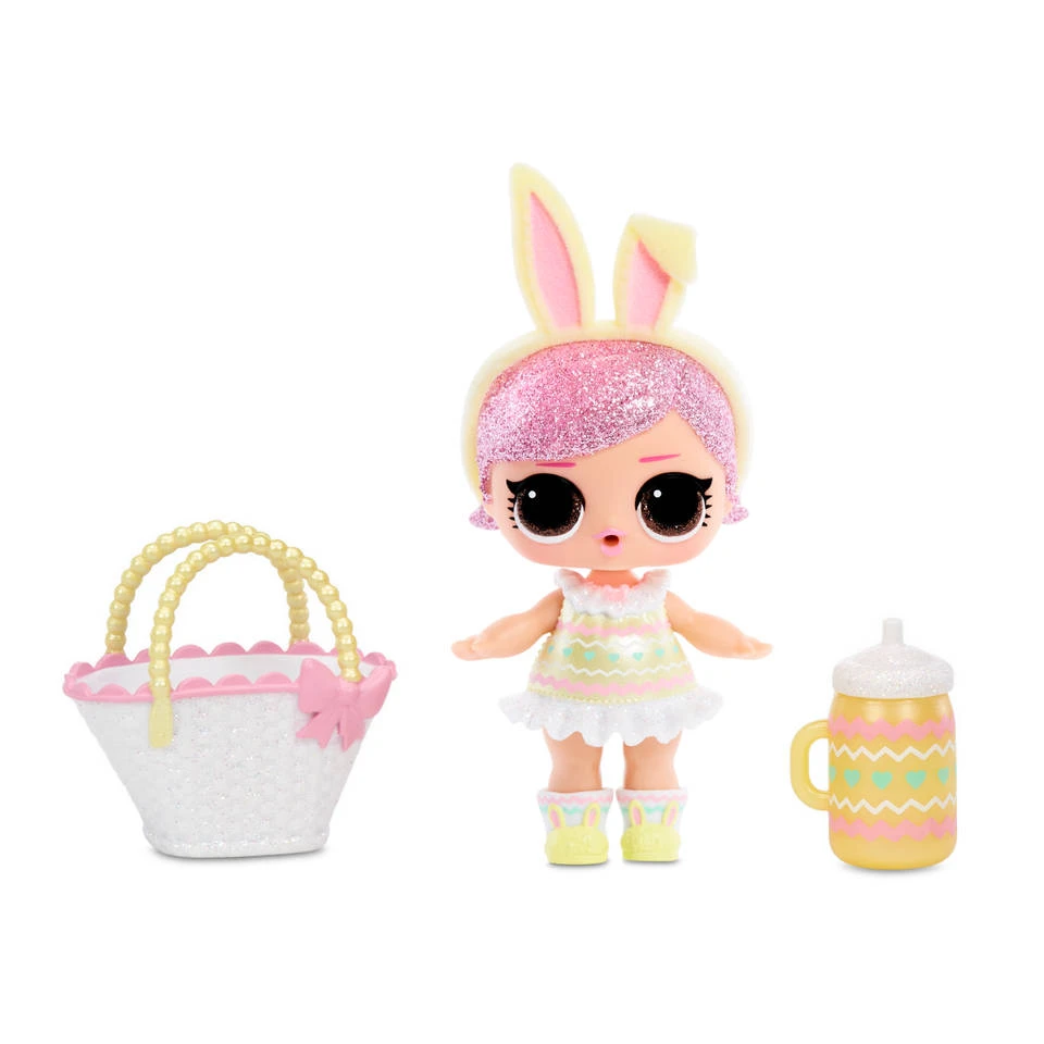 Verras met deze schitterende Spring Bling Tots pop. Deze pop komt met een Limited Edition versie van Hops met een schattige outfit in lente-thema, konijnenoren en een mandje, allemaal met glinsterende details. Voer je pop voor een waterverrassing. Bij elke set krijg je een geheim bericht, een flesje, een mandje, een haarband, outfit, schoenen en L.O.L. Surprise! Spring Bling Limited Edition pop. Verzamel zowel de Limited Edition pop als het Limited Edition diertje met L.O.L. Surprise! Spring Bling.