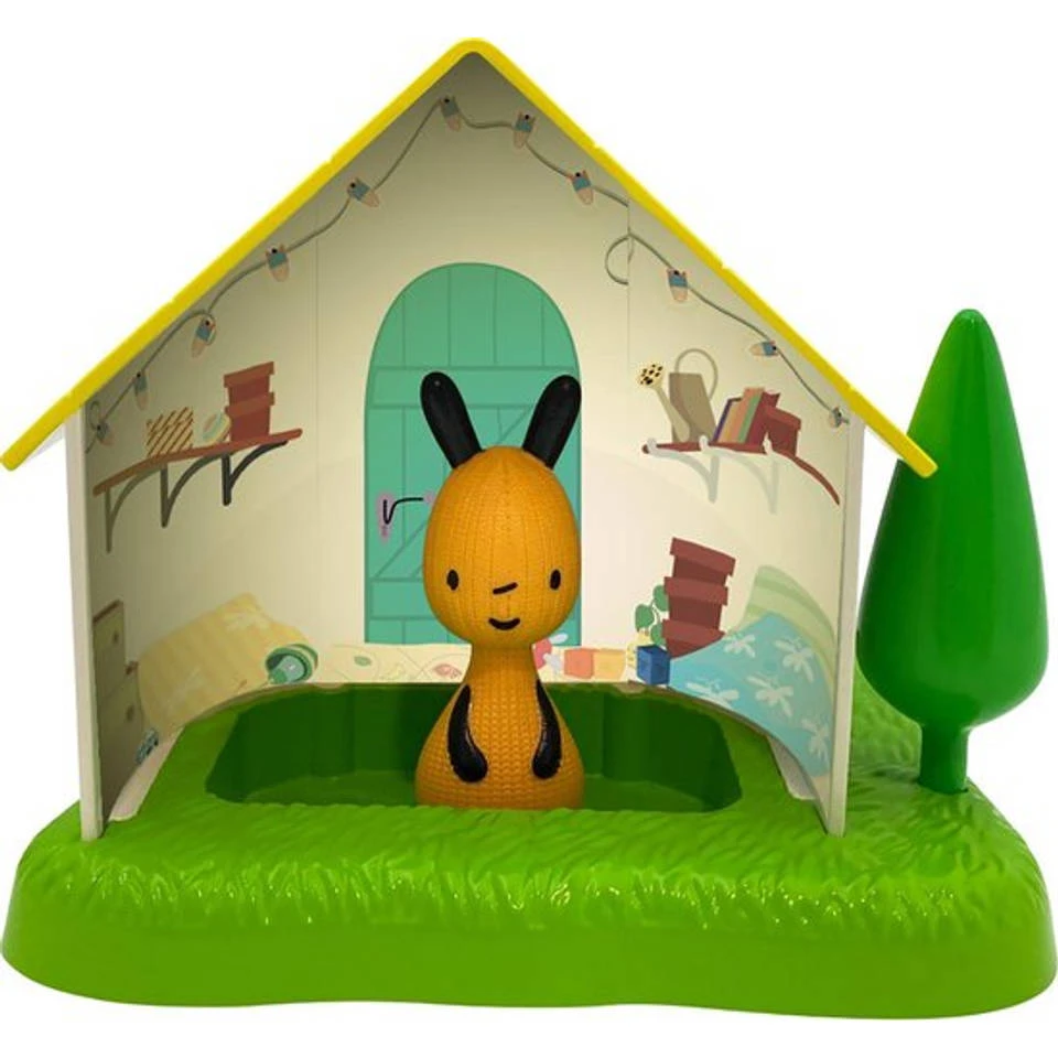Je zal het enorm naar je zin hebben met deze trein van Bing. Deze trein met licht en geluid bestaat uit een stoomlocomotief en twee rijtuigen. In het eerste rijtuig vind je Bings huis. Deze speelset kan uit het rijtuig gehaald worden. In het huis van Bing staan zijn bank en kast. In het achterste rijtuig vind je Bings tuin met tuinhuis en een boom. Ook deze speelset kan uit het rijtuig gehaald worden. Speel met de Bing en Flop figuurtjes in het huis en de tuin. Druk op de stoomlocomotief voor treingeluiden en het themalied van de Bing serie. Ook zal de voorkant van de trein oplichten. Zet Bing in de locomotief en gebruik het koord om de trein voort te trekken. Beleef Bings Wereld in je eigen huis! De trein is ongeveer 40 cm lang en werkt op twee AAA-batterijen.