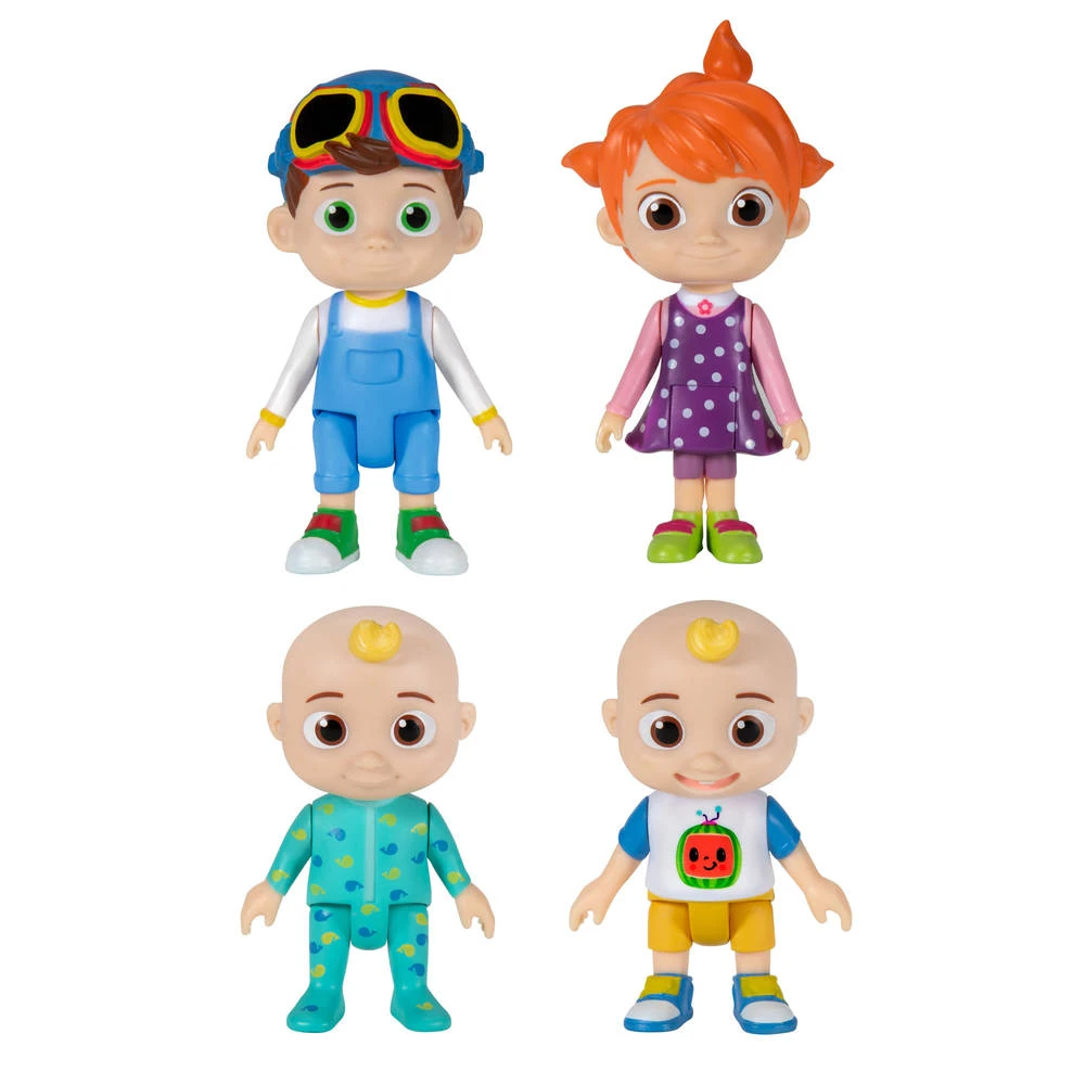 - Deze CoComelon familieset bevat 2 sets JJ figuren in 2 schattige outfits, TomTom en YoYo.
