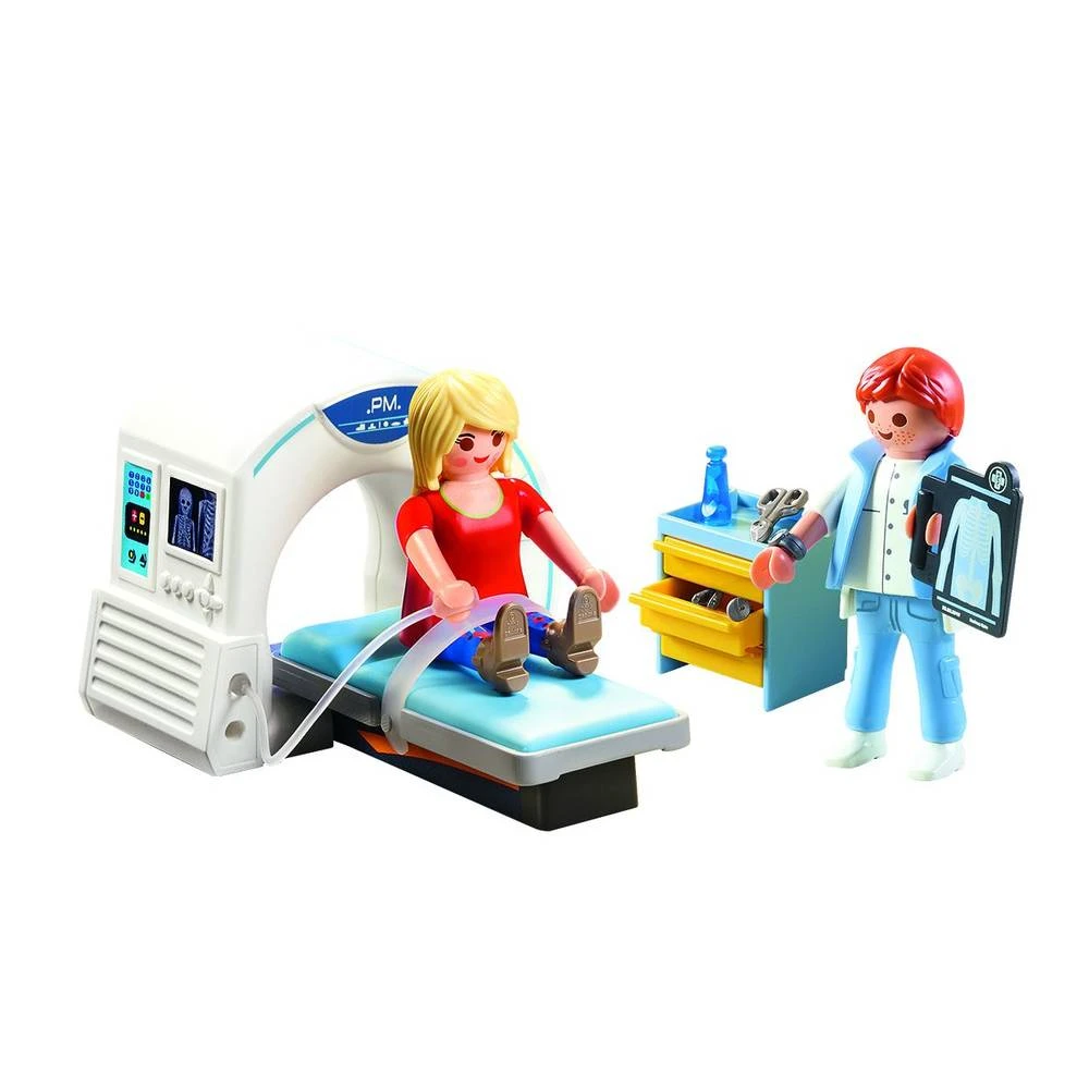 De radioloog gebruikt de MRI-machine in de Playmobil City Life radiologiekamer om de interne organen van zijn patiënten te onderzoeken. Vandaag is Elizabeth aanwezig om verschillende tests te ondergaan. Ze gaat op de bank liggen en wordt in de buis geschoven. Als ze tijdens het onderzoek hulp nodig heeft, kan ze met een druk op de knop de dokter bellen. Alles gaat sneller dan verwacht en ze wordt weer naar buiten geschoven. De arts komt de resultaten van het onderzoek bespreken: “Alles is in orde”!