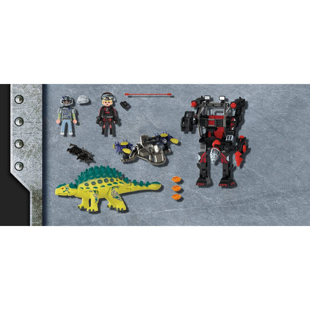 De Playmobil Dino Rise Saichania is uitgerust met afvurende kanonnen en verwijderbare bepantsering. Het figuur kan erop rijden. PLAYMOBIL-nr. 70626